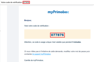 Depuis le 15 juillet 2024, myPrimobox a mis en place une nouvelle mesure de sécurité visant à protéger encore davantage vos informations et à garantir un accès sécurisé à votre espace. Cette nouvelle fonctionnalité consiste à saisir un code d’identification reçu par e-mail pour l’ensemble de nos utilisateurs (sauf si la double authentification est activée sur votre espace).