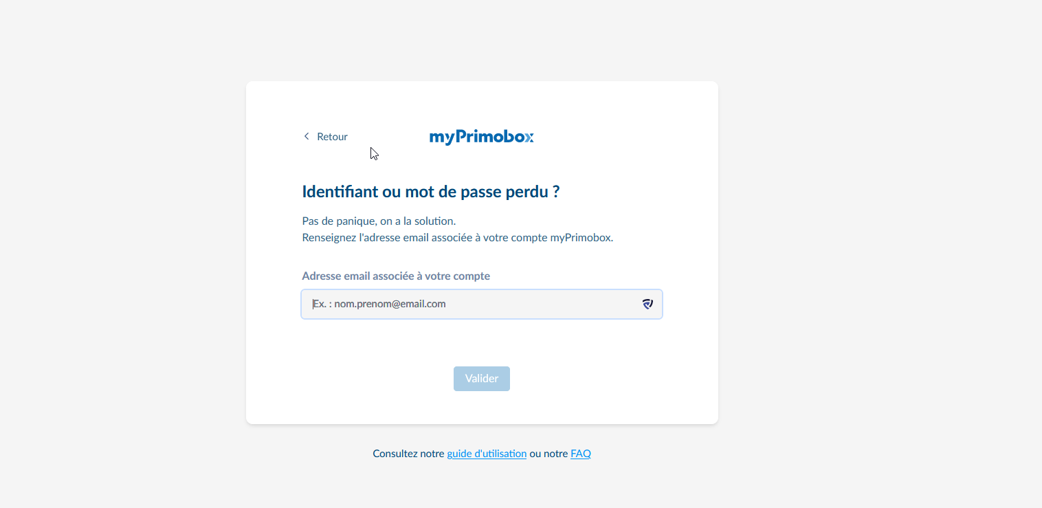 Vous ne recevrez cet e-mail que si l’adresse e-mail indiquée est bien associée à votre espace myPrimobox.
